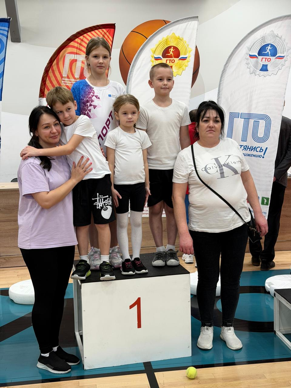 Золотые призеры праздника Евгения Ансимова с детьми Вероникой, Матвеем и Павлом остались, чтобы выразить благодарность организаторам: