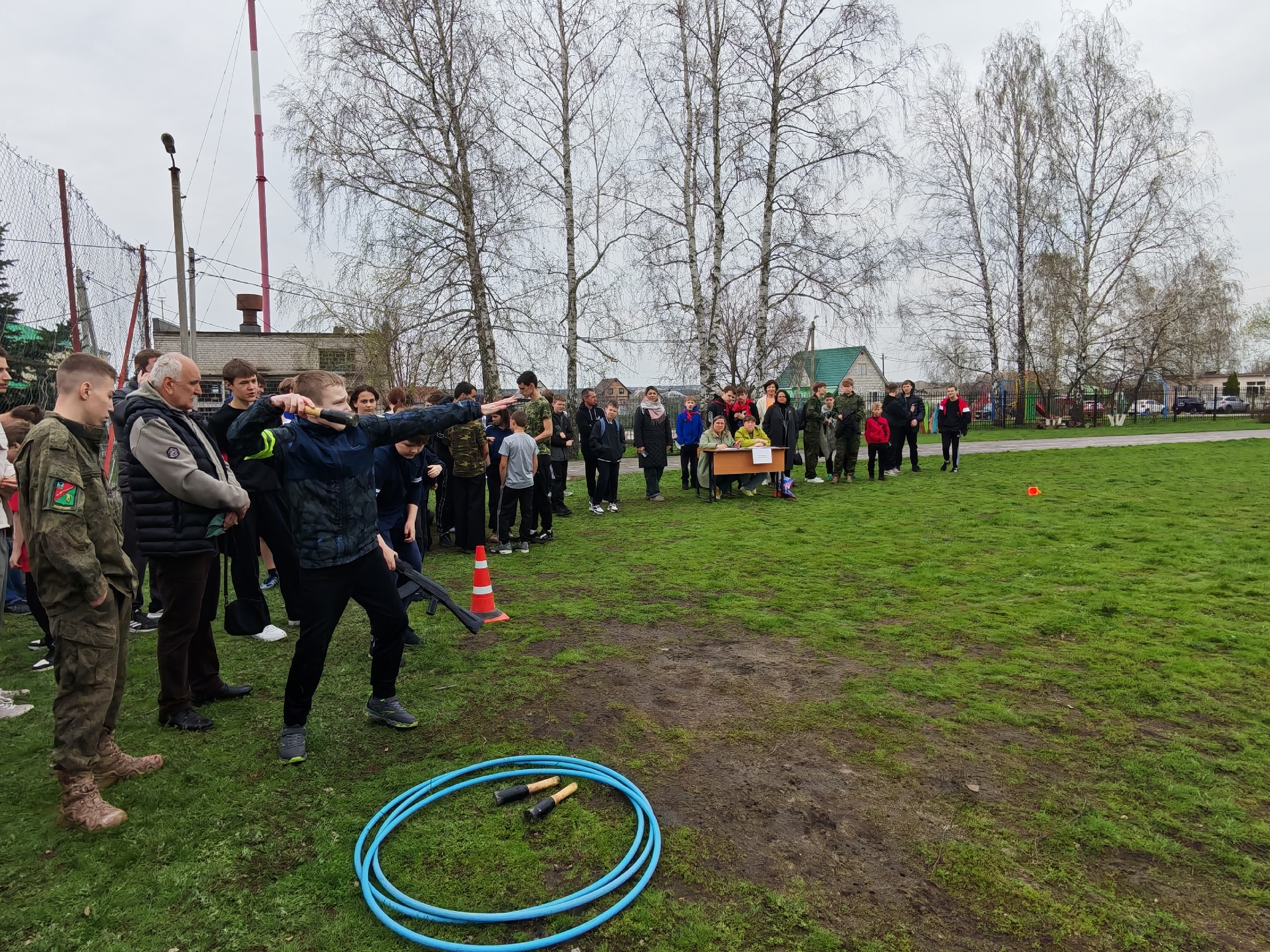 Военизированная полоса препятствий — метание в цель, преодоление препятствий ползком, бег между стойками, поднимание туловища, одевание костюма ОЗК.